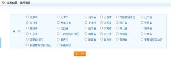 點(diǎn)擊【確定】之后,跳轉(zhuǎn)至選擇報(bào)考省份界面,如圖