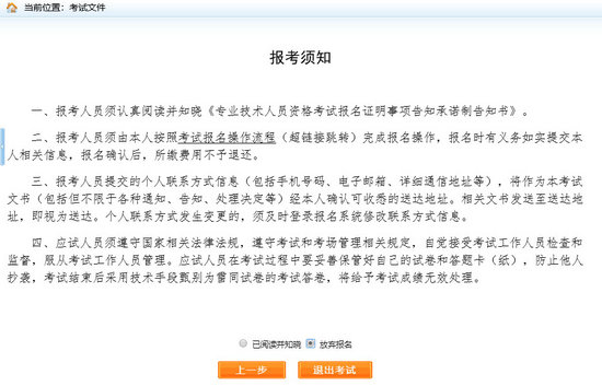 重點(diǎn)提示:報(bào)考須知為報(bào)考人員必須閱讀并了解的重要事項(xiàng),請報(bào)考人員務(wù)必認(rèn)真閱讀。若考生不想報(bào)名,點(diǎn)擊【放棄報(bào)名】,退出該考試報(bào)名。