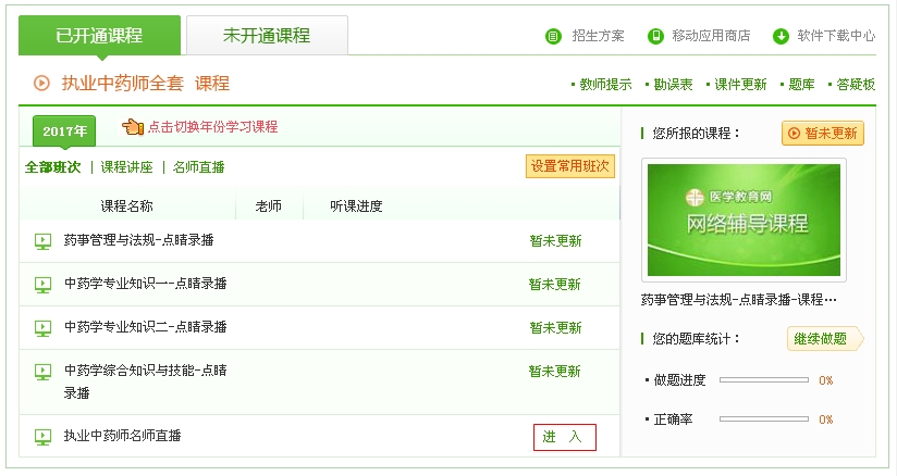 2、專業(yè)師資直播班學(xué)員點(diǎn)擊課程列表中的直播入口進(jìn)行查看。