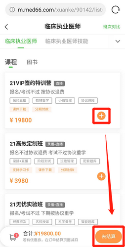 第三步:選擇你想要的課程,點擊“加號”加入購物車,點擊“去結(jié)算”;