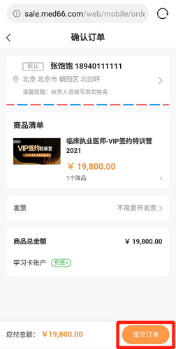 第四步:在訂單頁確認無誤后,點擊“提交訂單”;