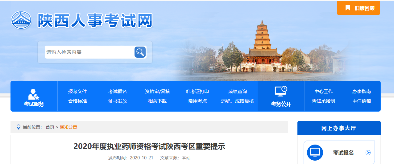 陜西人事考試中心10月21日發(fā)布了《2020年度執(zhí)業(yè)藥師資格考試陜西考區(qū)重要提示》,醫(yī)學(xué)教育網(wǎng)為大家整理如下: