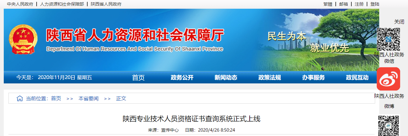 陜西專業(yè)技術(shù)人員資格證書查詢系統(tǒng)正式上線