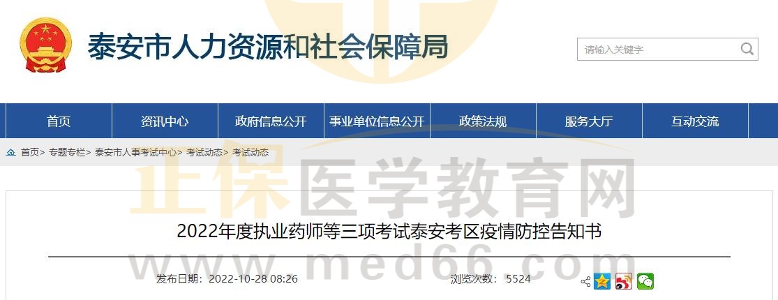 2022年度執(zhí)業(yè)藥師等三項考試泰安考區(qū)疫情防控告知書