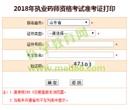2018年山東省執(zhí)業(yè)藥師準(zhǔn)考證打印入口: