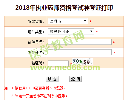 2018年上海市執(zhí)業(yè)藥師準(zhǔn)考證打印入口:
