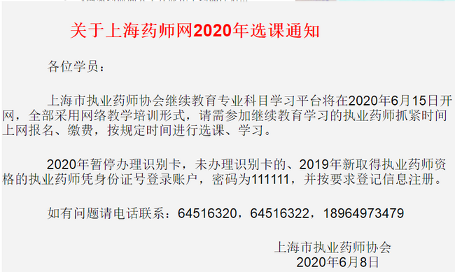 關(guān)于2020年上海執(zhí)業(yè)藥師繼續(xù)教育選課通知