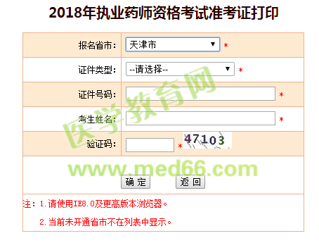 天津市2018年執(zhí)業(yè)藥師準(zhǔn)考證打印入口: