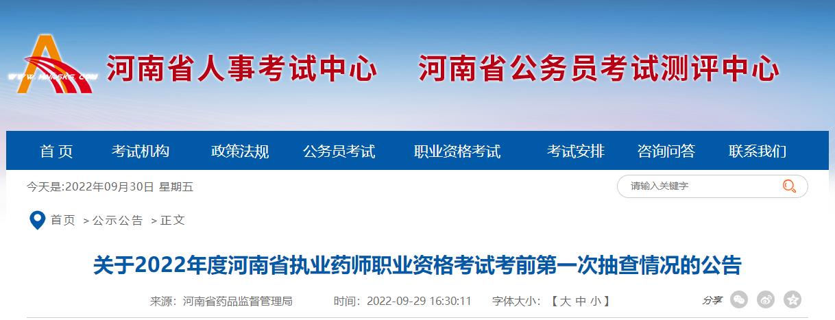 關(guān)于2022年度河南省執(zhí)業(yè)藥師職業(yè)資格考試考前第一次抽查情況的公告