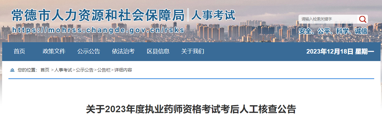 【湖南常德】關(guān)于2023年度執(zhí)業(yè)藥師資格考試考后人工核查公告
