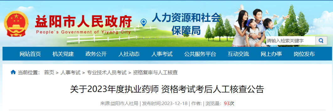 【湖南益陽】關(guān)于2023年度執(zhí)業(yè)藥師資格考試考后人工核查公告