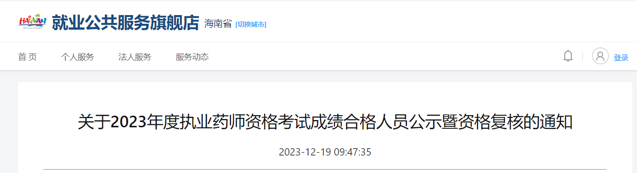 【海南】2023年執(zhí)業(yè)藥師資格考試成績合格人員公示暨資格復核通知