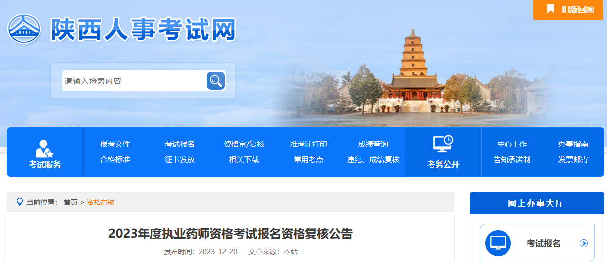 【陜西】2023年度執(zhí)業(yè)藥師資格考試報(bào)名資格復(fù)核公告
