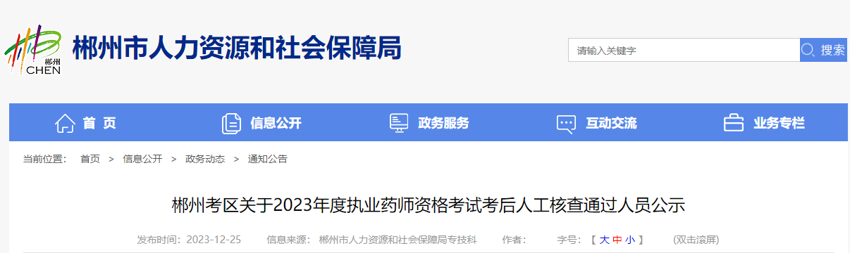 【湖南郴州】關(guān)于2023年度執(zhí)業(yè)藥師資格考試考后人工核查通過人員公示
