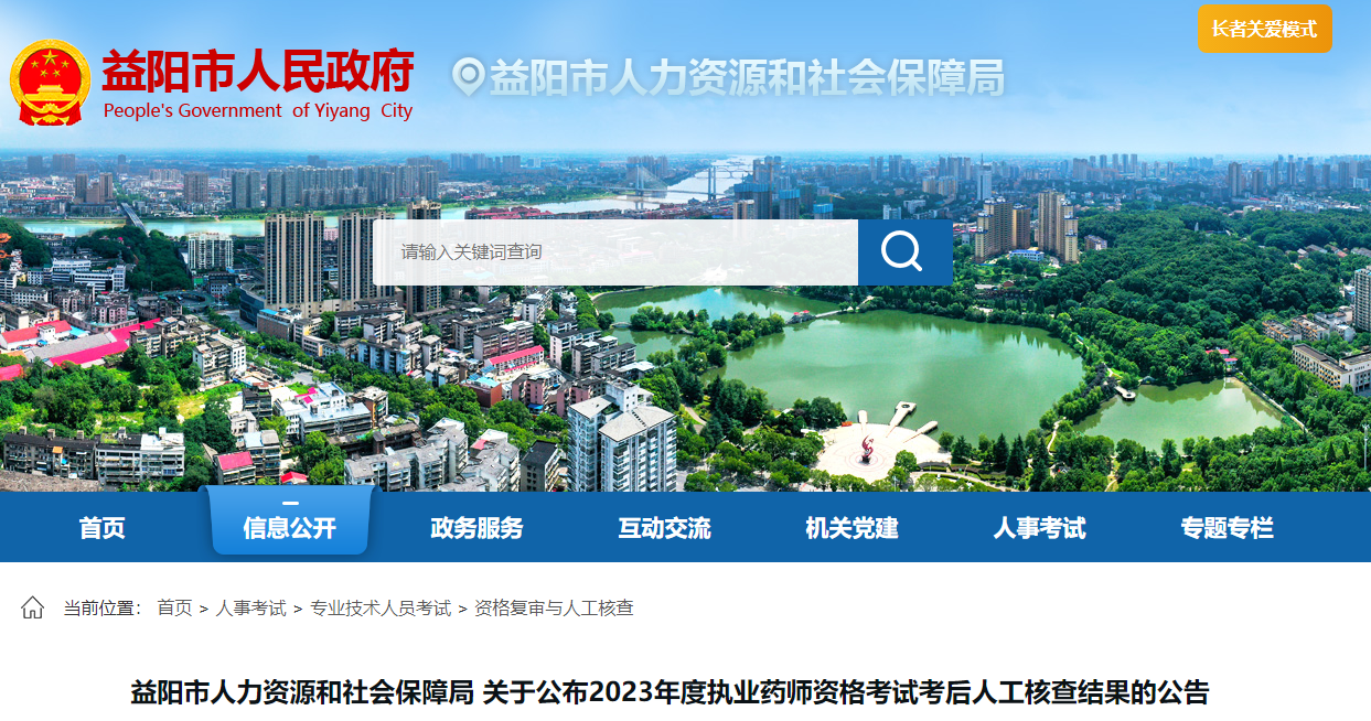 【湖南益陽(yáng)】2023年度執(zhí)業(yè)藥師資格考試考后人工核查結(jié)果的公告