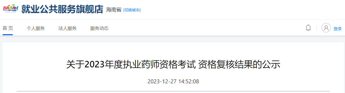 【海南】關(guān)于2023年度執(zhí)業(yè)藥師資格考試 資格復(fù)核結(jié)果公示