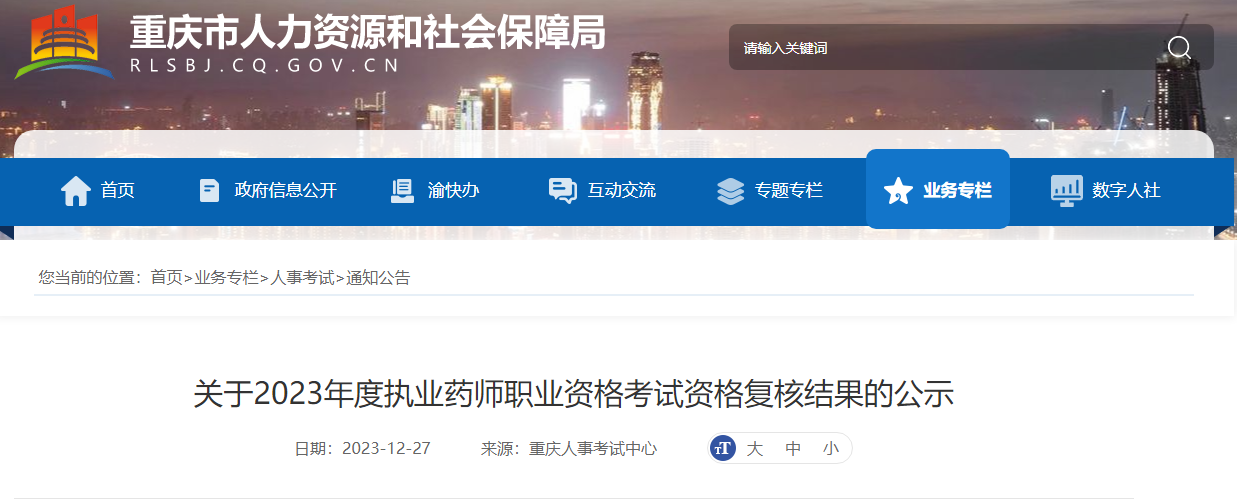 【重慶】關(guān)于2023年度執(zhí)業(yè)藥師職業(yè)資格考試資格復(fù)核結(jié)果公示