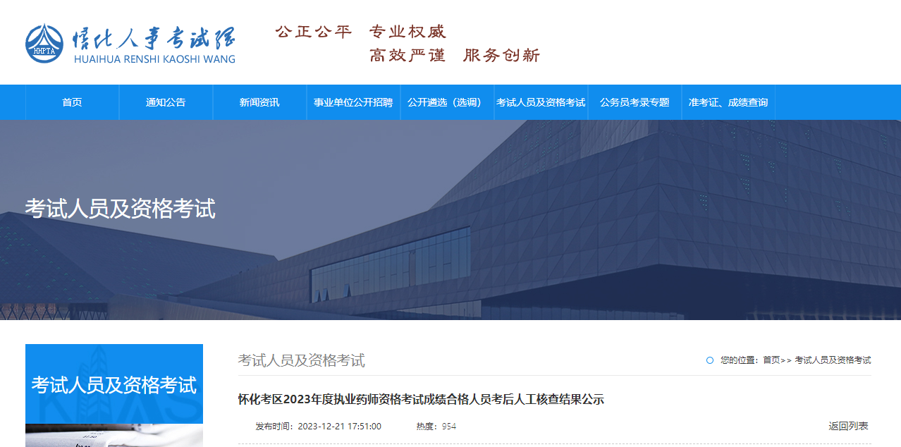 【湖南懷化】2023年度執(zhí)業(yè)藥師資格考試成績合格人員考后人工核查結(jié)果公示