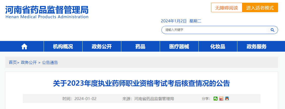 【河南】2023年執(zhí)業(yè)藥師職業(yè)資格考試考后核查情況的公告