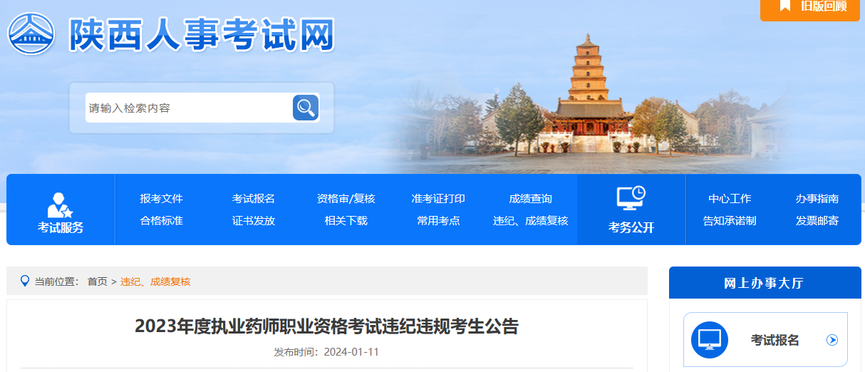 【陜西】2023年度執(zhí)業(yè)藥師職業(yè)資格考試違紀(jì)違規(guī)考生公告