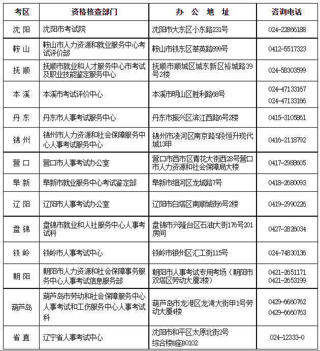 駐沈中、省直單位報考人員核查與監(jiān)管工作由省人事考試中心負(fù)責(zé);其他各市報考人員資格核查與監(jiān)管工作由所在市人事考試部門負(fù)責(zé)。全省人事考試資格核查部門咨詢電話見附件2。