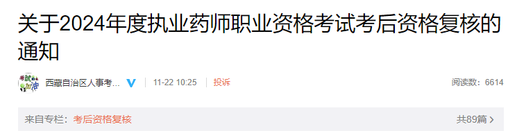 【西藏】2024年執(zhí)業(yè)藥師考試合格名單/考后資格復(fù)核的通知
