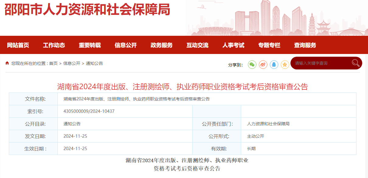 【湖南邵陽】2024年度執(zhí)業(yè)藥師、出版、注冊測繪師考試考后資格審查公告