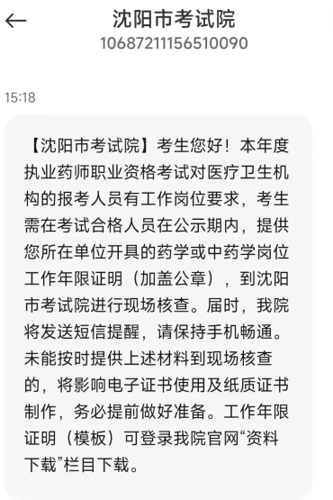 【遼寧沈陽(yáng)】2024年執(zhí)業(yè)藥師考后人工核查短信通知!