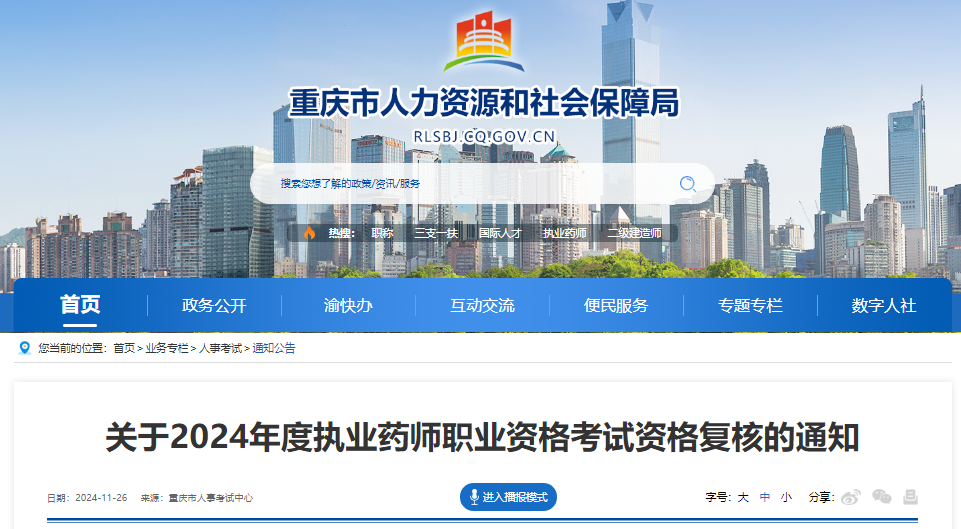 【重慶】關(guān)于2024年度執(zhí)業(yè)藥師職業(yè)資格考試資格復(fù)核的通知