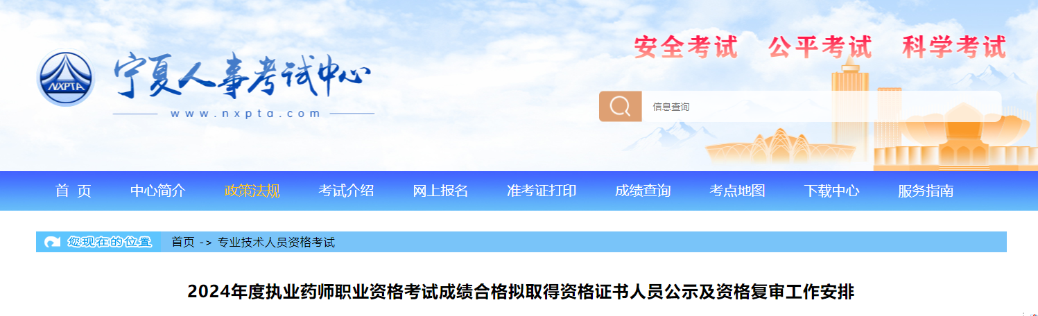 【寧夏】2024年執(zhí)業(yè)藥師成績(jī)合格擬取得資格證書(shū)人員公示及資格復(fù)審工作安排