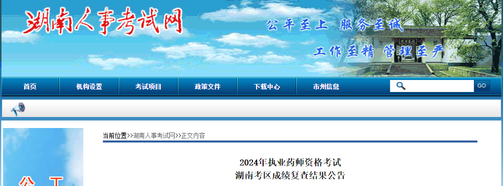 【湖南】2024年執(zhí)業(yè)藥師資格考試成績(jī)復(fù)查結(jié)果公告