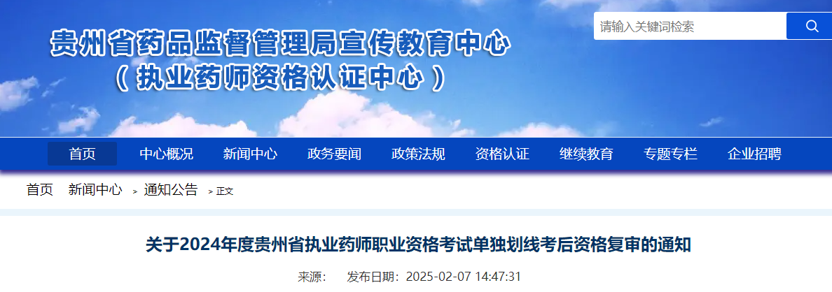 【貴州】2024年執(zhí)業(yè)藥師職業(yè)資格考試單獨(dú)劃線考后資格復(fù)審的通知