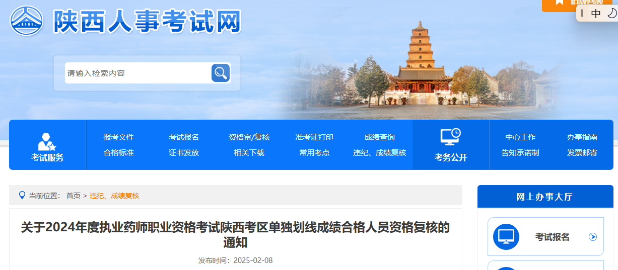 【陜西】2024年執(zhí)業(yè)藥師考試單獨劃線成績合格人員資格復核的通知