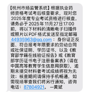 【浙江杭州】2025年執(zhí)業(yè)藥師考后審核通知!