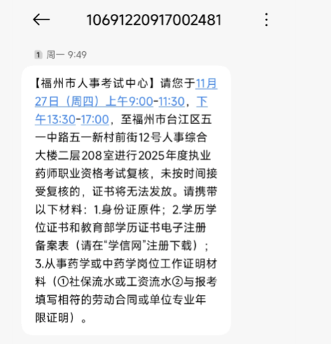 【?福建福州】2025年執(zhí)業(yè)藥師考后審核短信通知?