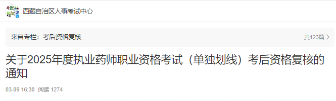 【西藏】2025年執(zhí)業(yè)藥師考試(單獨(dú)劃線)考后資格復(fù)核通知