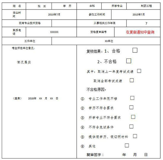 重慶市執(zhí)業(yè)藥師考試報(bào)名條件復(fù)審表