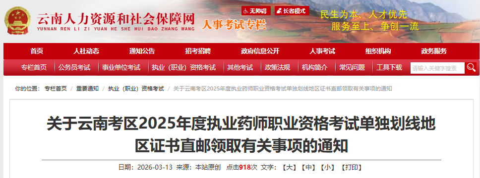 云南2025執(zhí)業(yè)藥師職業(yè)資格考試單獨(dú)劃線地區(qū)證書直郵領(lǐng)取通知