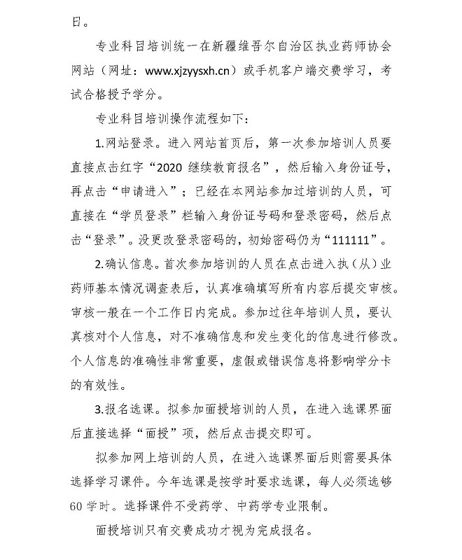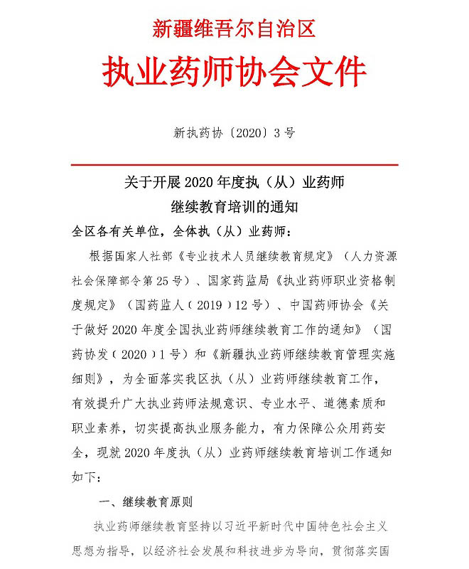 新疆:關(guān)于開(kāi)展2020年度執(zhí)(從)業(yè)藥師繼續(xù)教育培訓(xùn)的通知