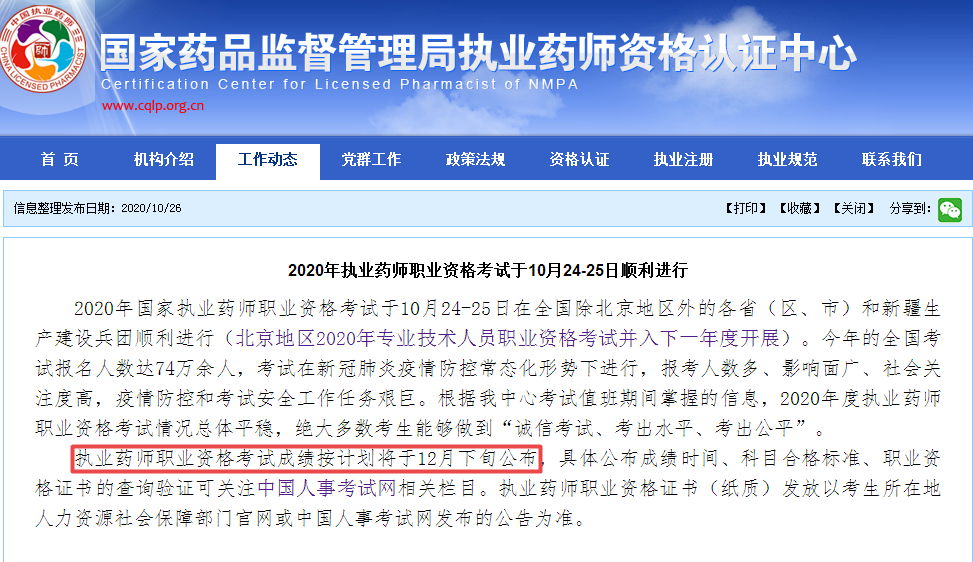 查詢2020年執(zhí)業(yè)藥師兵團(tuán)考試成績(jī)的網(wǎng)站、時(shí)間!