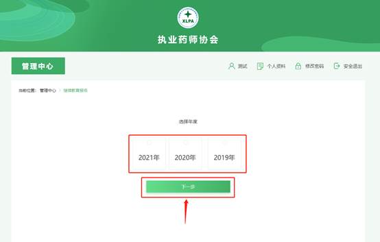 2、選擇報(bào)名年度,點(diǎn)擊下一步。