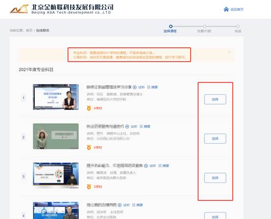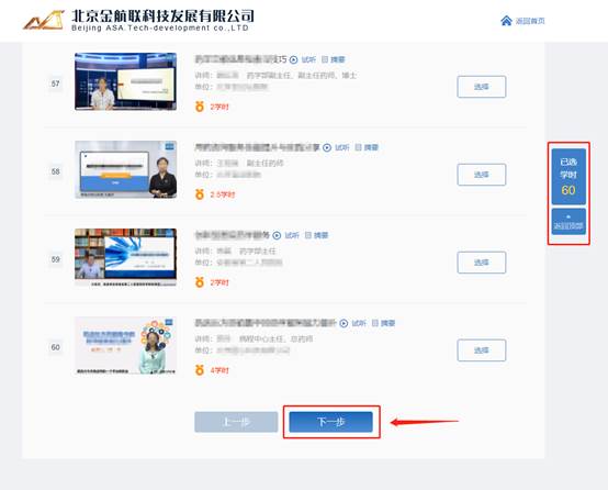 3、按要求選擇所需課程,點(diǎn)擊下一步。