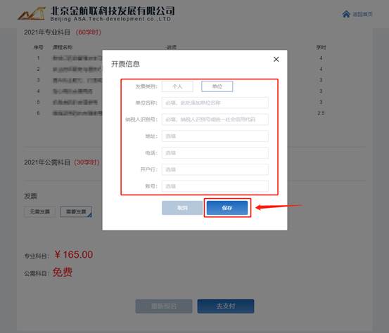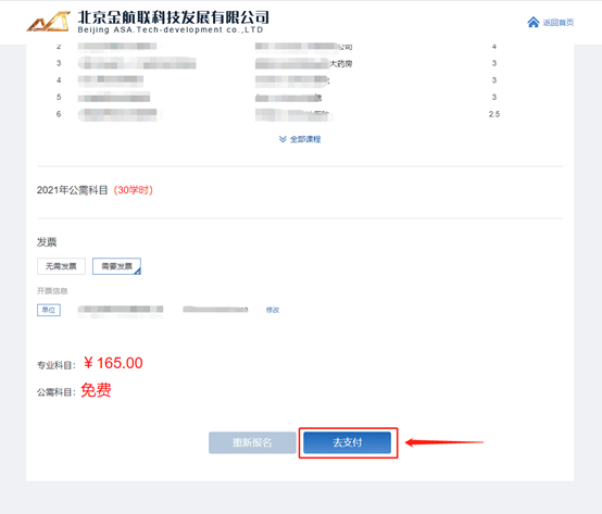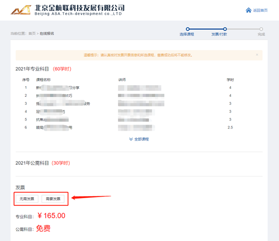 4、認(rèn)真核對所選課程,按需選擇是否需要發(fā)票。