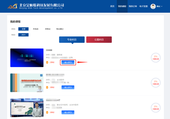 3-1-1、學(xué)習(xí)專業(yè)科目課程,點(diǎn)擊課程進(jìn)入學(xué)習(xí)。