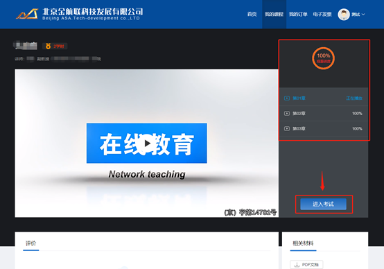 3-1-2、觀看所有章節(jié)后,進(jìn)入考試。