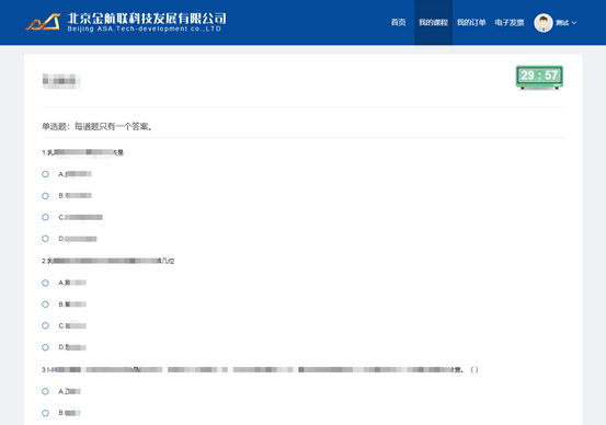 觀看視頻內(nèi)容后,彈出隨堂測試,考試通過后獲得有效時(shí)長。