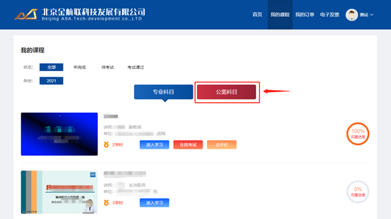 3-2-1、學(xué)習(xí)公需科目課程,我的課程中,選擇公需科目。