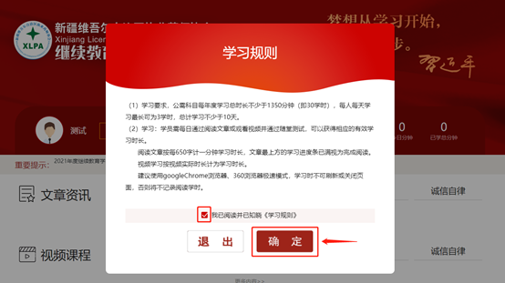 (2)學(xué)習(xí):學(xué)員需每日通過閱讀文章或觀看視頻并通過隨堂測試,可以獲得相應(yīng)的有效學(xué)習(xí)時(shí)長。