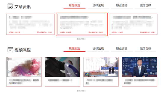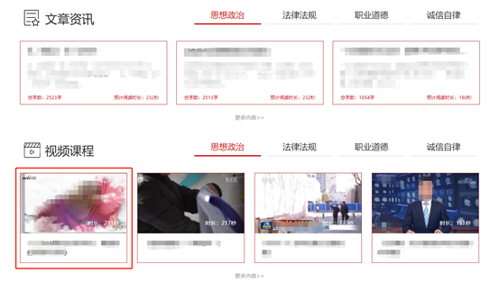 3-2-5、視頻課程分四個(gè)欄目:思想政治、法律法規(guī)、職業(yè)道德、誠信自律。