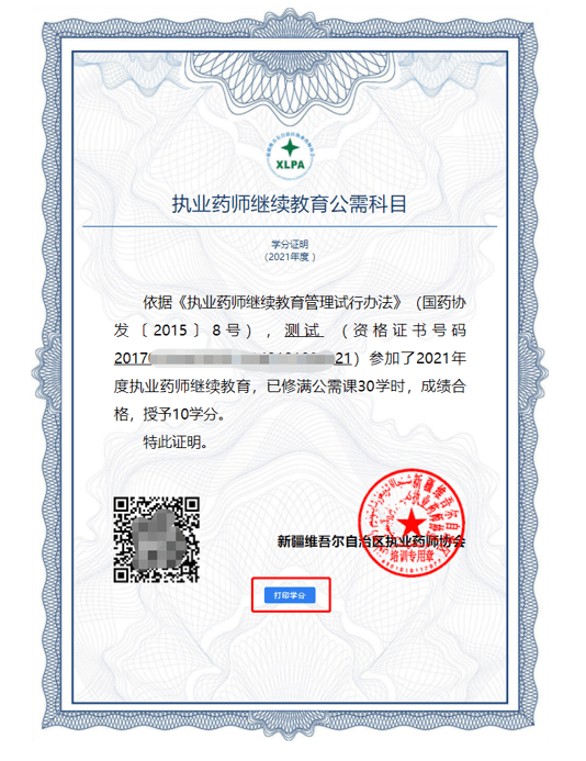 3、公需科目學(xué)分,點(diǎn)擊打印證明。